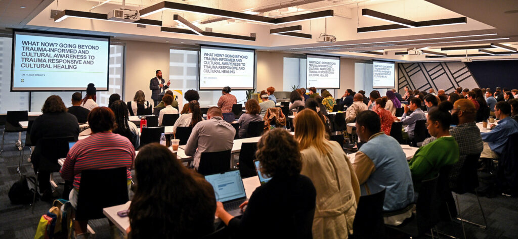 Nearly 120 journalists, researchers, prevention professionals, and survivor-community experts gathered in Philadelphia for our national conference: What Now? Gun Violence Reporting in Unprecedented Times. More than half of attendees earned PCGVR Certification in Gun Violence Prevention Reporting. Photograph by Kriston Jae Bethel for PCGVR.